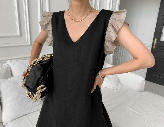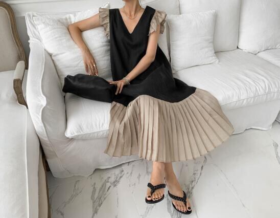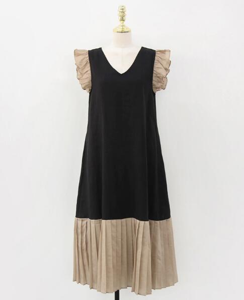 ノースリーブドレス チュニック ポロ襟 スカート 韓国トレンドファッション ドレス ミモレ丈