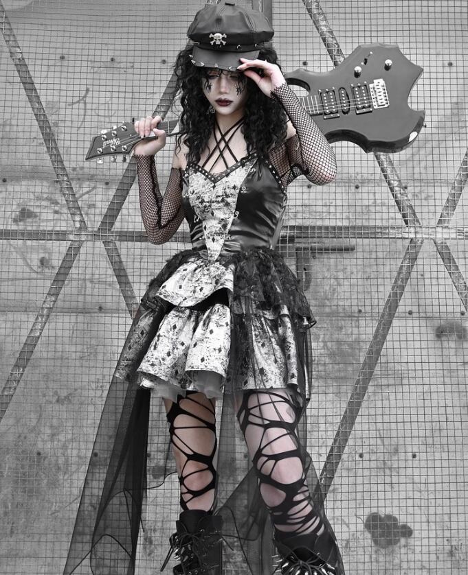 ◆パンク、ゴシックテイストのシアー付ドレス