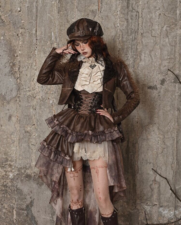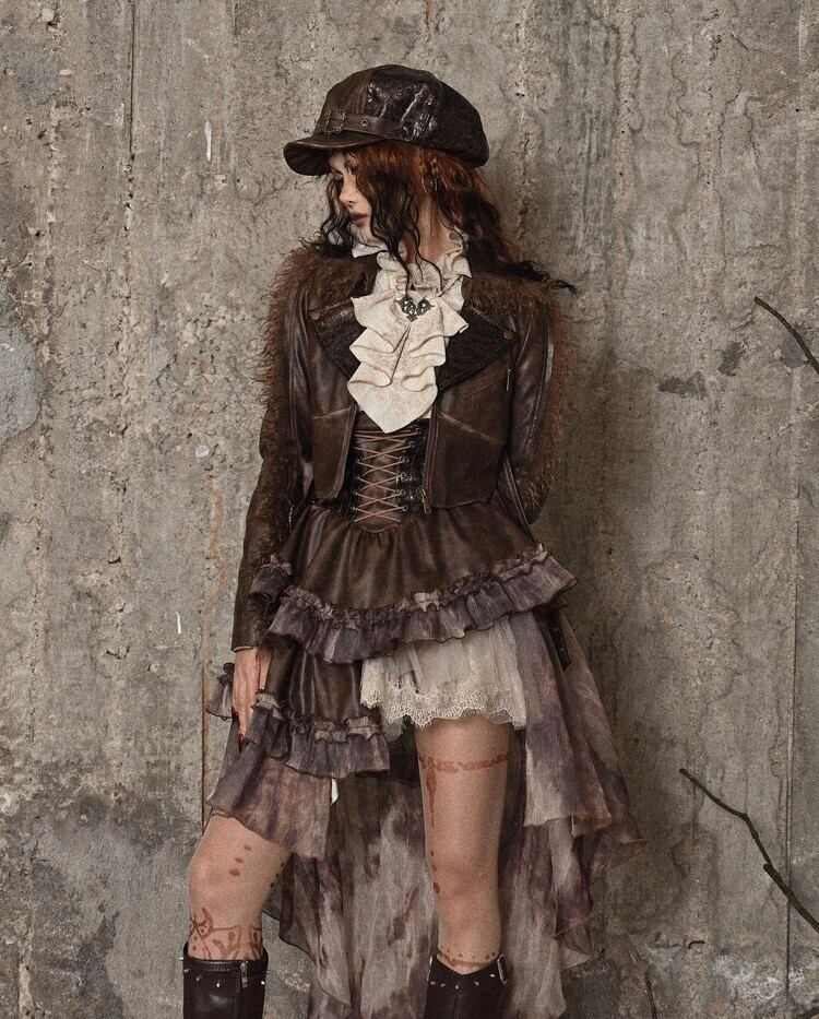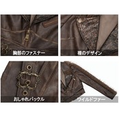 ◆おしゃれドクロ模様の襟とワイルドなファー付ライダースジャケット。